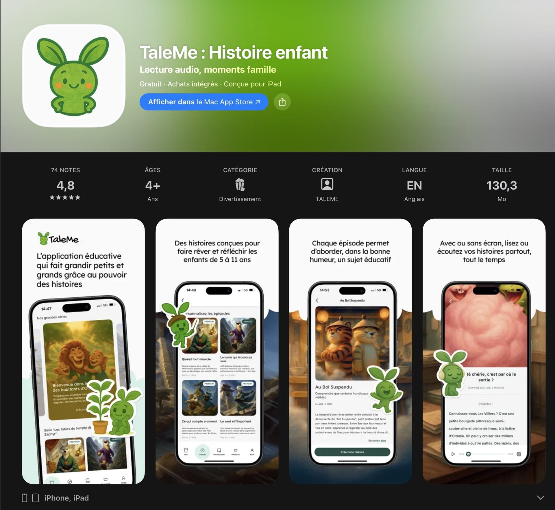 J'ai créé l'application mobile TaleMe 🦁.